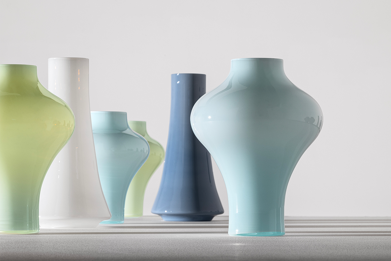 With five new opaline shades, the capsule collection reinterprets the designs created between 1985 and 1986 and recently rediscovered in the archives. A dialogue between design sensibilities that places purity of form and functional elegance at its core.