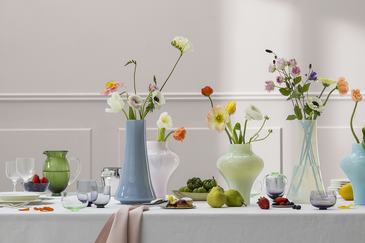An invitation to the season of effortless conviviality. Delicate floral tones, luminous reflections, and the subtle interplay of transparencies and opacities allow the poetry of glass to unfold, creating a composition of serene elegance.