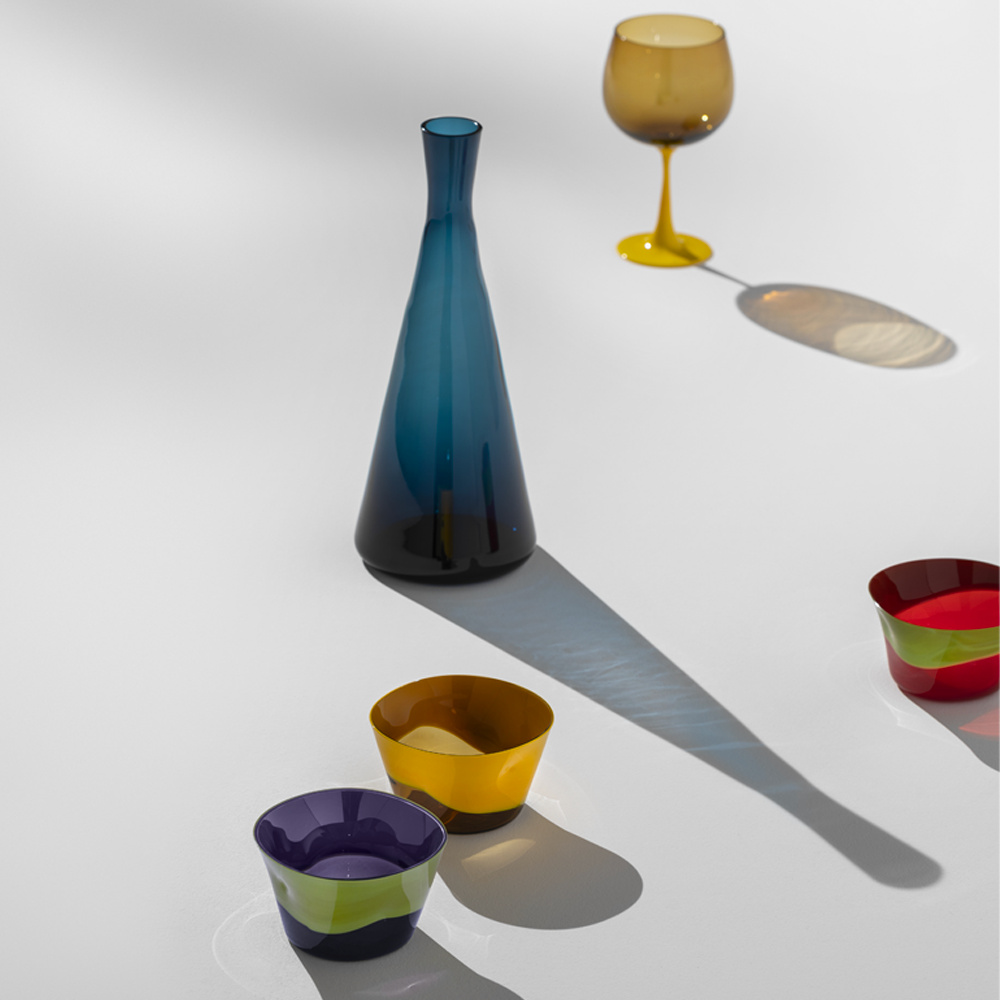 Acquista tutta la collezione Burlesque, realizzata in collaborazione con l’architetto e designer Stefano Marcato. È così chiamata per la vivacità delle combinazioni cromatiche che ricalcano la comicità e l’euforia tipiche dello spettacolo. Il calice Borgogna, convesso ed ampio per valorizzare il profumo dei vini rossi, è reso così un oggetto di design originale, grazie anche all’unione tra trasparenze e colori opachi.