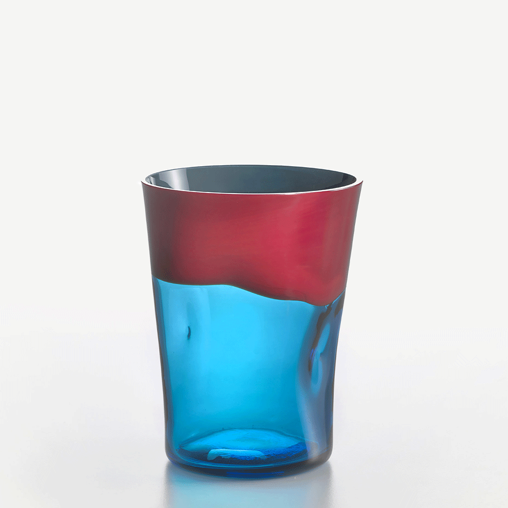 Dandy è una creazione in cui si fondono casualmente trasparenze e colori opachi e lucidi, in ben 12 combinazioni diverse. Lo rende ancor più originale l’utilizzo di una tecnica elaborata nel 1951 che prevede uno schiacciamento del bicchiere, il quale si adatta alla mano ed acquisisce un’ergonomia distintiva. Ogni Dandy è, per questo motivo, un pezzo unico.