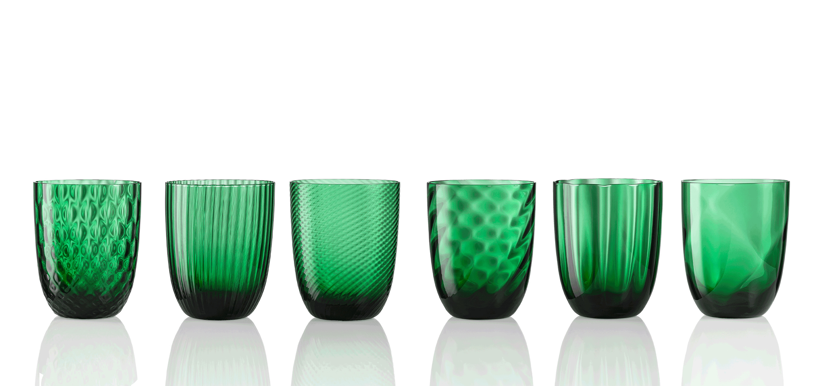 € 288,00Idra Set di 6 Bicchieri Acqua, Texture Assortite, Verde Pino.